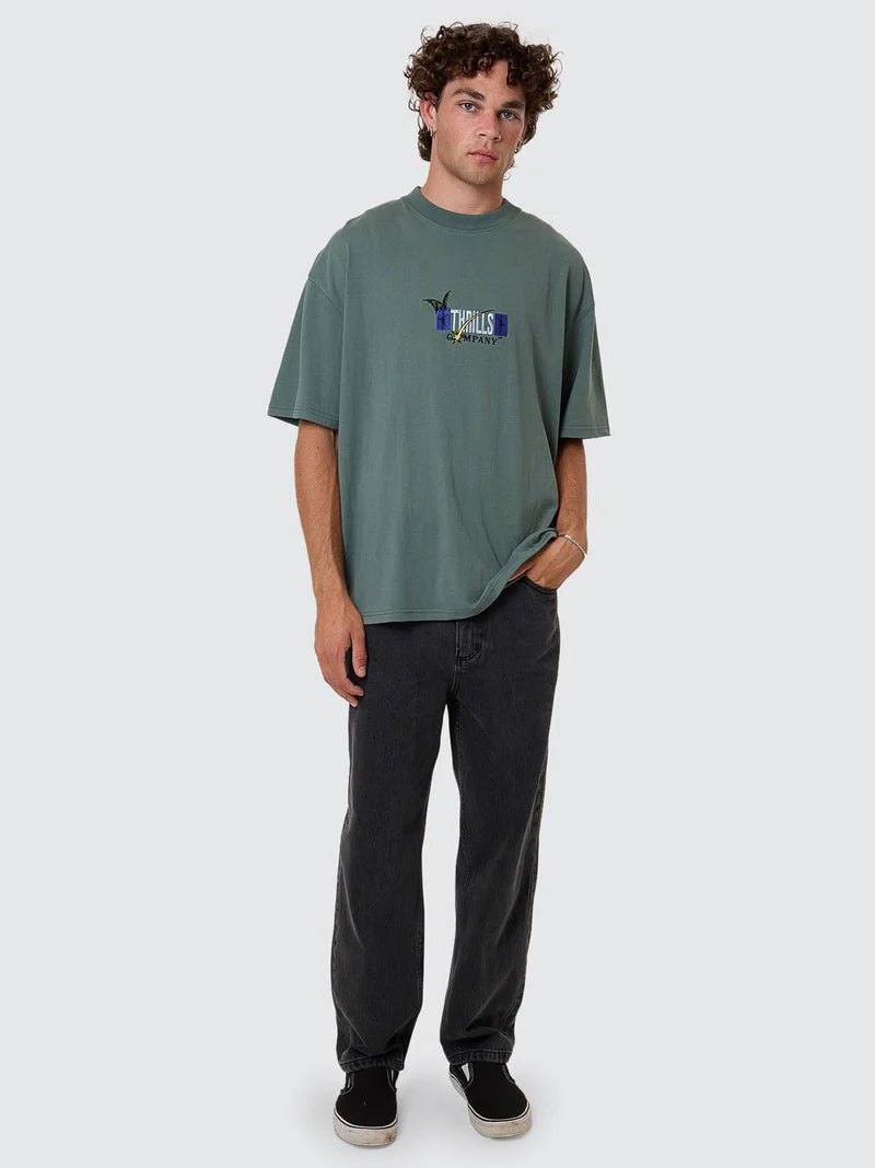 Loose, blacked out, and built to last, the Slacker Denim Jean in Ash Black delivers a strong silhouette with just the right amount of edge. Cut from heavy-wearing cotton denim, these relaxed-fit pants feature a mid-rise waist and loose, full-length legs that stack at the ankles. Finished with a classic 5-pocket build, these Thrills pants are a wardrobe staple you can't do without. Whether you're pairing with men's going out shirts or dialling things down with men's basic tees, this one can do it all, sliding effortlessly into any men's streetwear Australia look.
